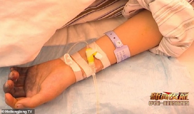 The mother had to use a taxi to bring her daughter to Daqing Oil Field General Hospital in Daqing where doctors put the girl under observation.