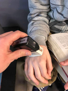 She asked all the kids to wash their hands in the washbasin she had in the class. After all the kids were done, she gave a stamp to each one of them.