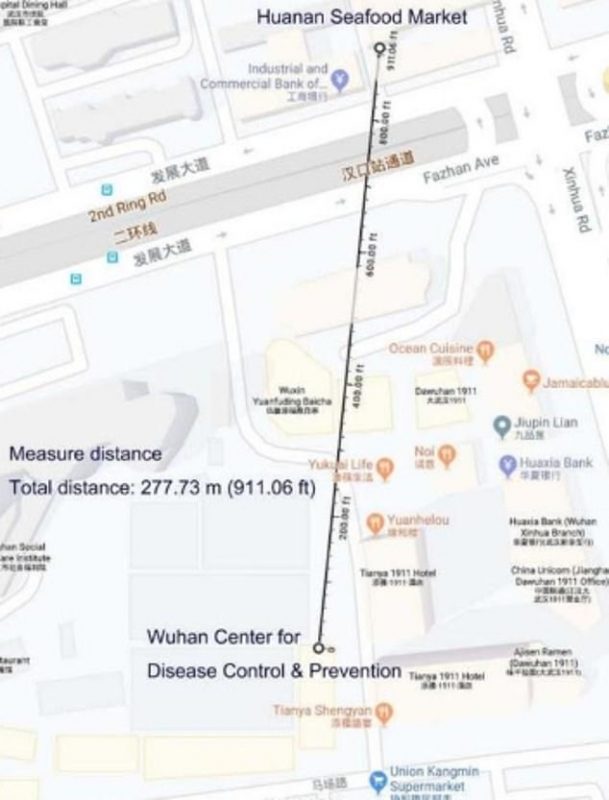 Some Chinese experts believe coronavirus may have begun in a research facility only 300 yards away from the fish market in Wuhan.