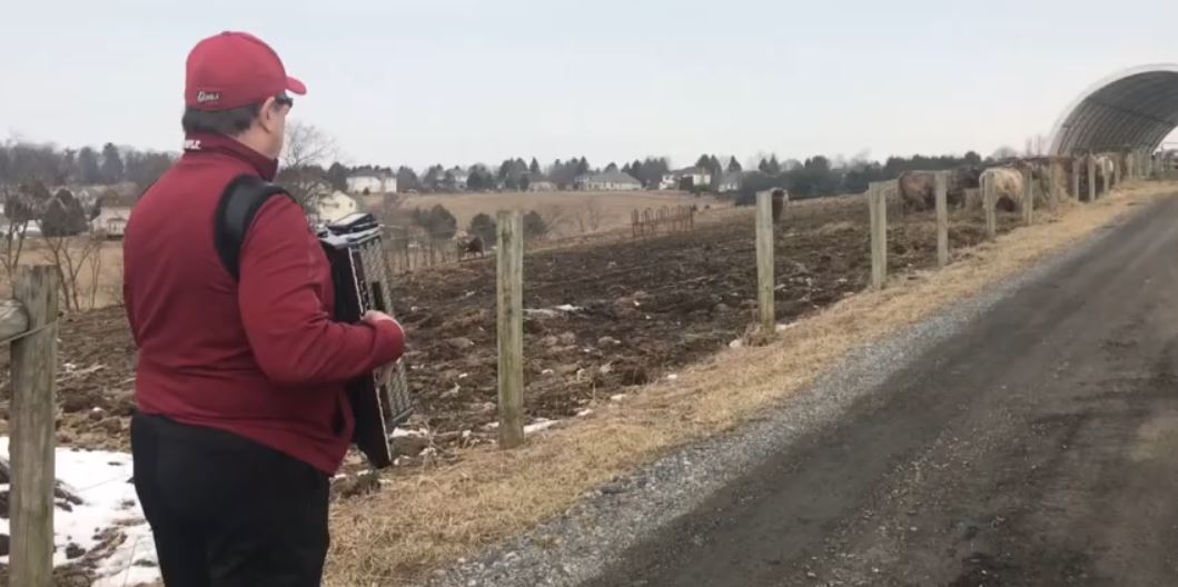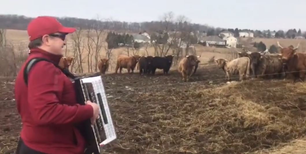Watch this fantastic video to see how the cows love the sound of the accordion music that is being played by the man.