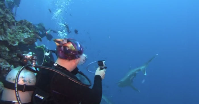 Dave and Kristy were filming the sharks with their GoPro when a shark came very close to Kristy.