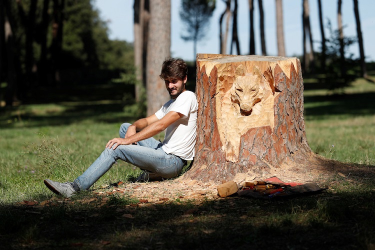 Andrea Gandini, 22, is a professional sculptor who is bringing new life in Rome, Italy, where he locates dead trees and carves faces into the wood.