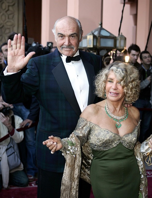 Sir Sean Connery clasps his loving wife’s hand in one of their final photos taken before he passed away aged 90.