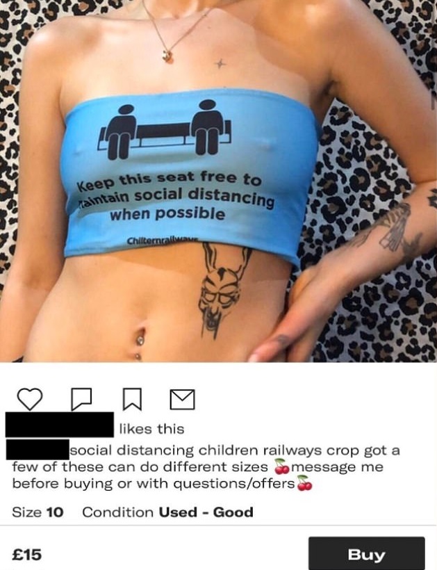Advertising the ‘products’ via the app, the seller wrote: “Social distancing [Chiltern] Railways crop got a few of these can do different sizes. Message me before buying or with questions/offers.”
