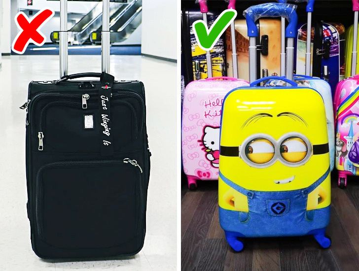 Most passengers buy dark bags. So in order not have to spend a lot of time looking for your baggage, buy a bright-colored bag that you can easily spot in hundreds of bags. You can also put stickers on your bag to recognized them fast.