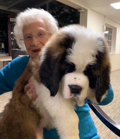 After David Mazzarella’s dog died, the family brought in Brody the St. Bernard, an adorable 15-week-old puppy who turned out to become Sally’s best friend after accidentally strolling to her front door while exploring his new neighborhood.