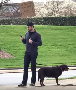 The following morning, the 40-year-old began thinking of other ways to find the owner of the dog. And so, he decided to make a sign saying “Do you know this lost dog????” and hold it on the corner of the street for three hours together with Roxy.