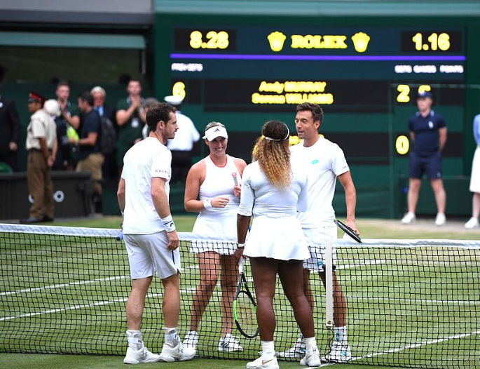 Murray paired up with 23-time Grand Slam winner Serena Williams, who partner Alexis Ohanian, the co-founder of Reddit, was also a spectator as the pair sailed to a 6-4, 6-1 victory.