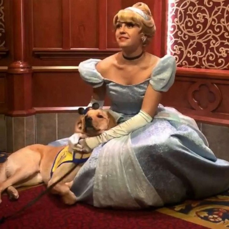 Watch a video of a training service dog who fell in love with Cinderella below.