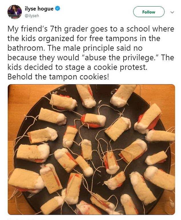 “The male principal said no because they would ‘abuse the privilege. The kids decided to stage a cookie protest. Behold the tampon cookies!”