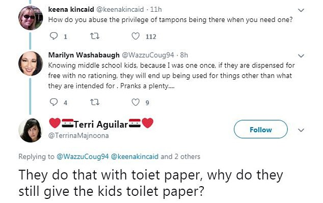“Kids would take advantage of having basic hygiene products? Is he afraid girls are just gonna start having periods for fun,” one man asked.