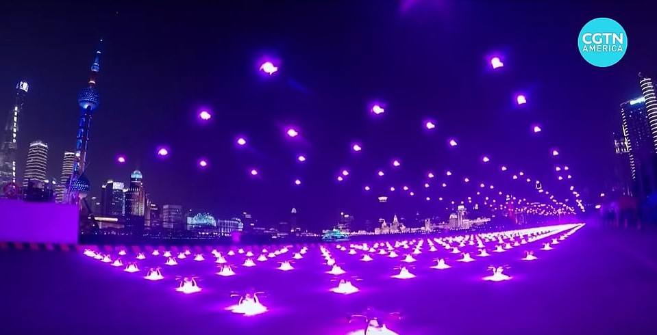 To eliminate the loud noise and the amount of waste generated during fireworks displays, China’s largest city programmed hundreds of drones to perform in sync to come up with stunning texts and shapes.