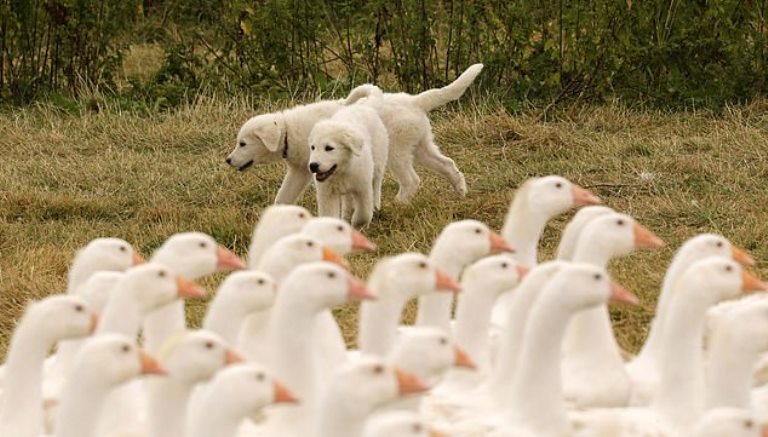 The two cute dogs’ job is to guard the chickens and geese on the farm and shoo away attackers like foxes and badgers.