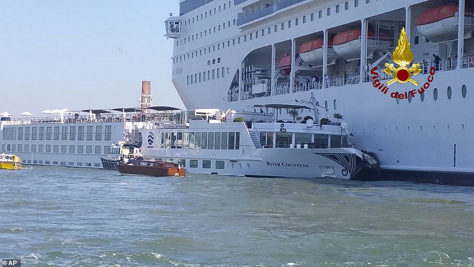 The MSC Opera cruise ship collided with the small River Countess and the San Basilio dock on the Giudecca Canal in Venice.