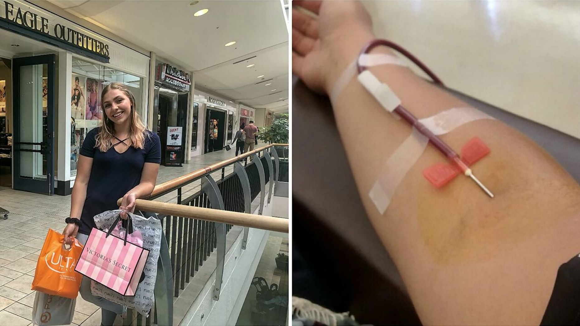 A shopaholic donates her blood plasma twice a week to fund her retail therapy habit.