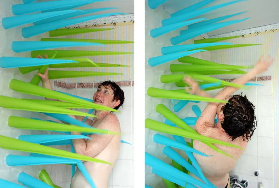 Designed by an artist named Elizabeth Buecher, this special shower curtain will sprout up spikes if the person inside the shower takes longer than four minutes.