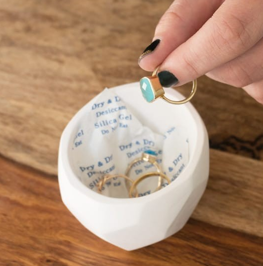 - Keeps your silver safe – Just keep a silicon gel packet in your drawer with the silver jewelry and it will keep your jewelry protected.