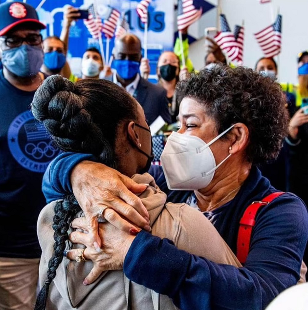 Shortly after arriving home, Biles hit the road again to see her NFL star boyfriend Jonathan Owens, who voiced his support for his girlfriend on social media as she competed in Tokyo.