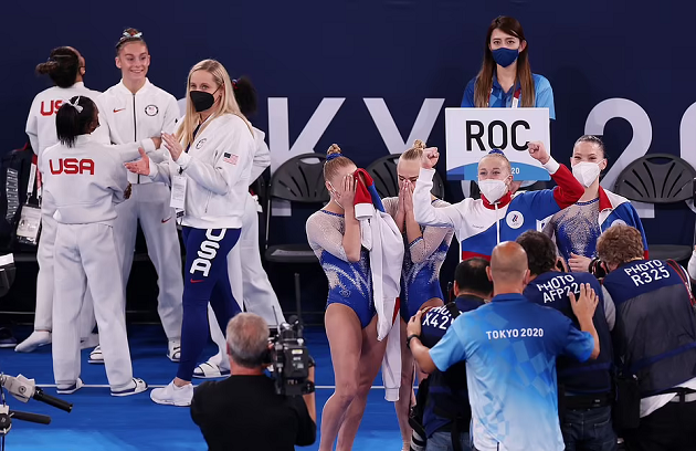 “OLYMPIC SILVER MEDALISTS,” she wrote as Russia’s athletes claimed the gold.