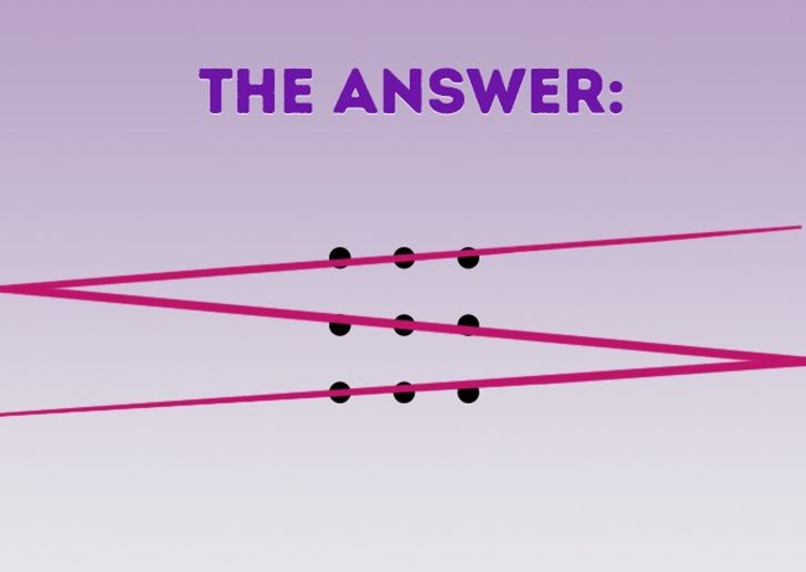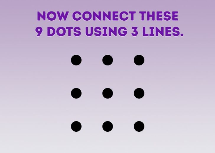 You must connect 9 dots using only three lines! Have you figured out how to do it?