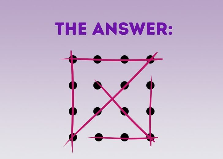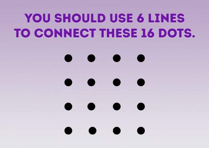 Can you connect all 16 dots using 6 lines? Take a look at the picture below and think carefully.