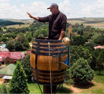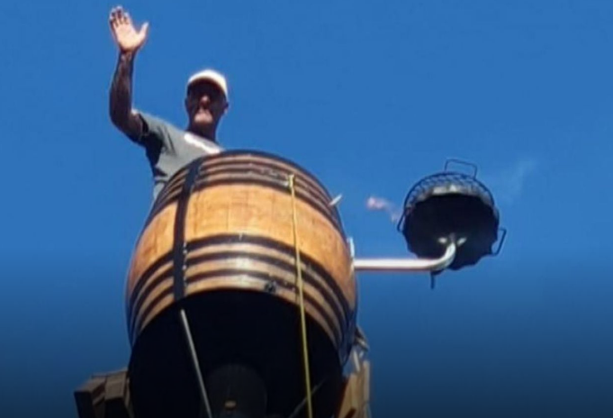 Yes, he is Vernon Kruger taking a seat 80 feet in the air in a barrel, and he has been there for about two months.