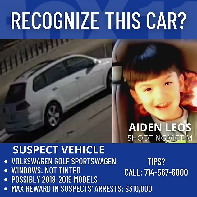 Aiden, 6, was fatally shot during a road-rage incident while his mother, Joanna Cloonan, was driving along the 55 freeway in Orange County. They were on their way to drop off Aiden to kindergarten.