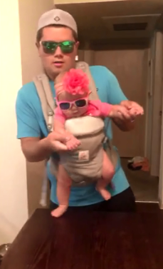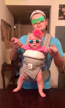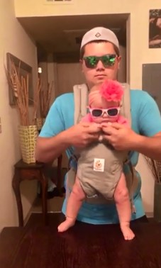 The father gave a comic touch to himself and the baby so that the video comes out to be funnier.