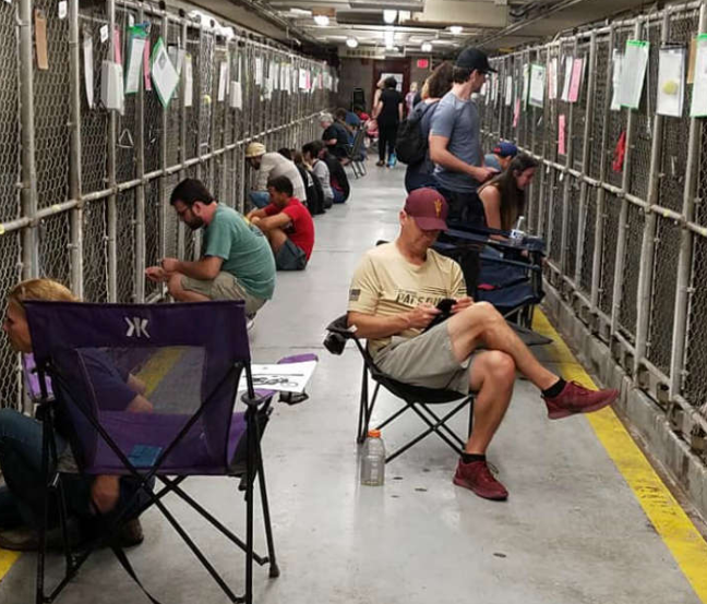 Last year at the same time, more than 300 people from the local community gathered in the shelter to calm the scared pups.