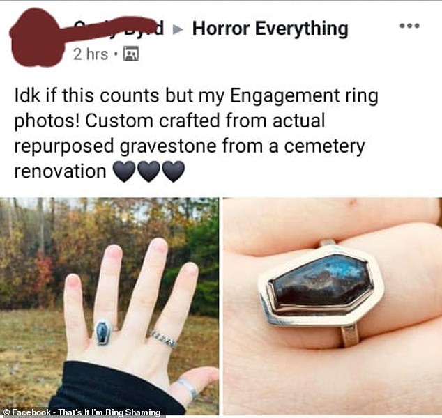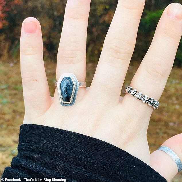 The ring, that features a central stone carved into the shape of a coffin, was slammed by the Facebook users for its design as one even said that it looked like a ‘haunted p*nis’.