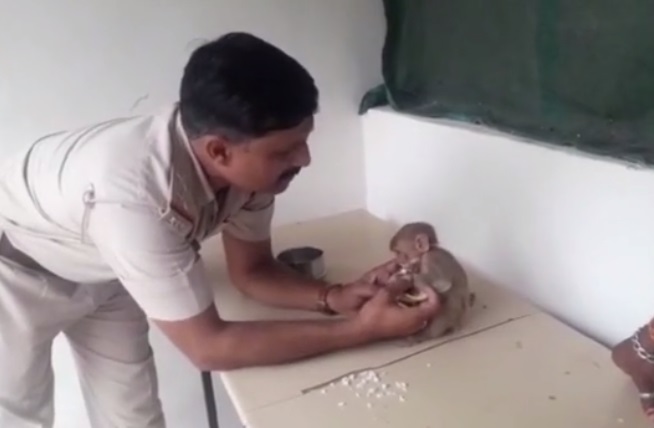 After the monkey was fed by the police officers, they have allegedly handed it over to forest officials who will determine the next step actions to ensure that the animal has a bright future.