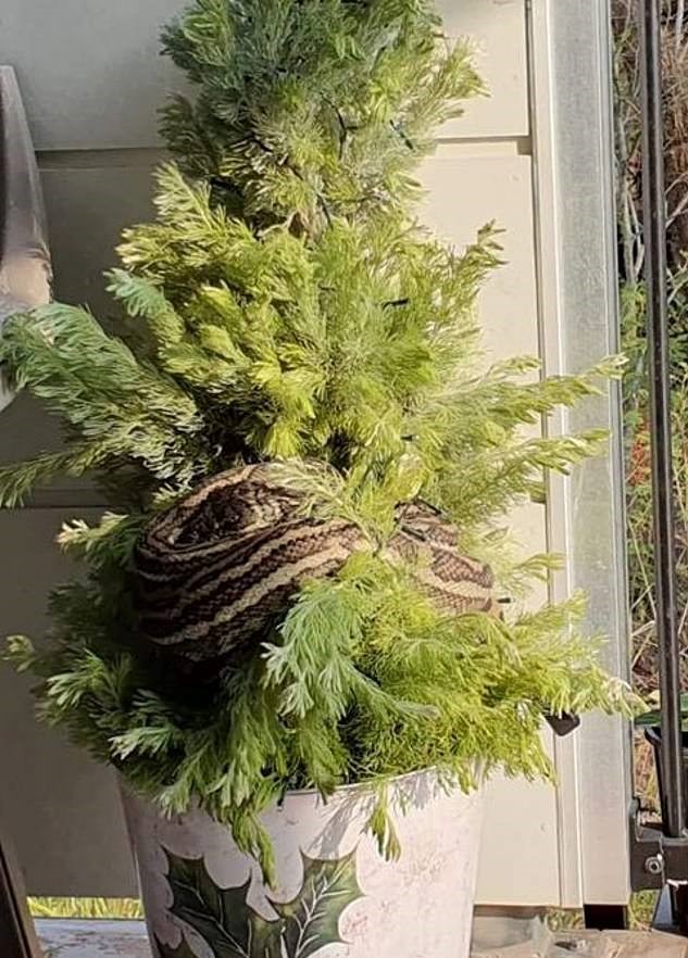 As she admitted, she was shocked to her bones after seeing the massive snake nicely curled up on the Christmas tree.