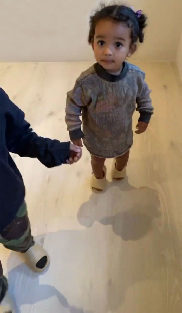 Logically, Kanye would give the first chance of trying the new Yeezy slides to his children.