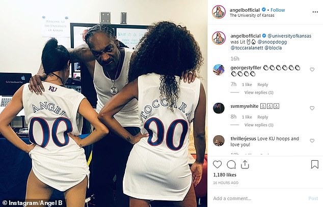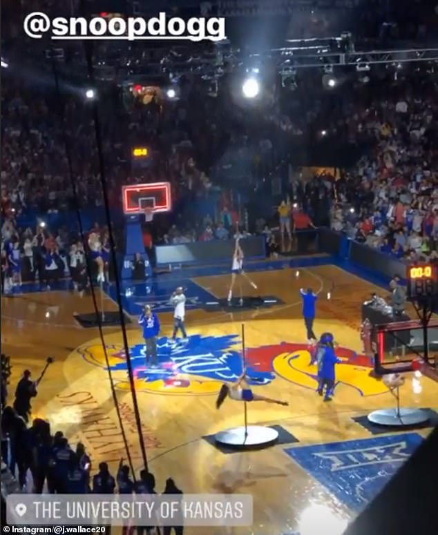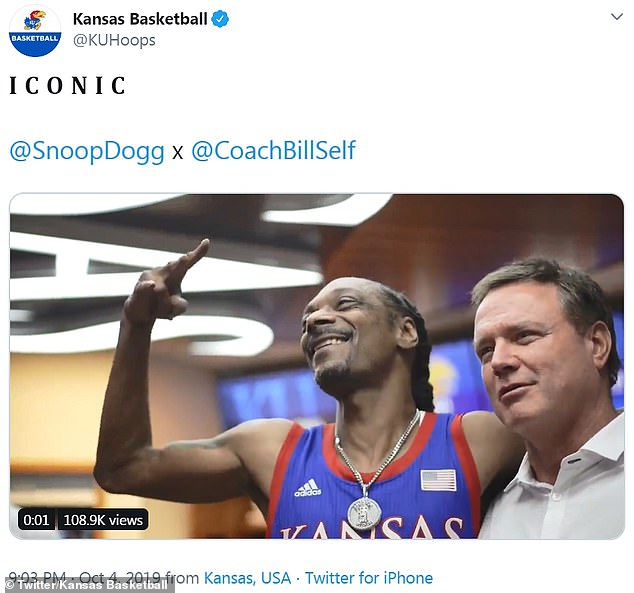One photo shows the rapper posing with head coach Bill Self. The photo was shared by the Kansas Basketball Twitter account with the caption: ‘I C O N I C.’