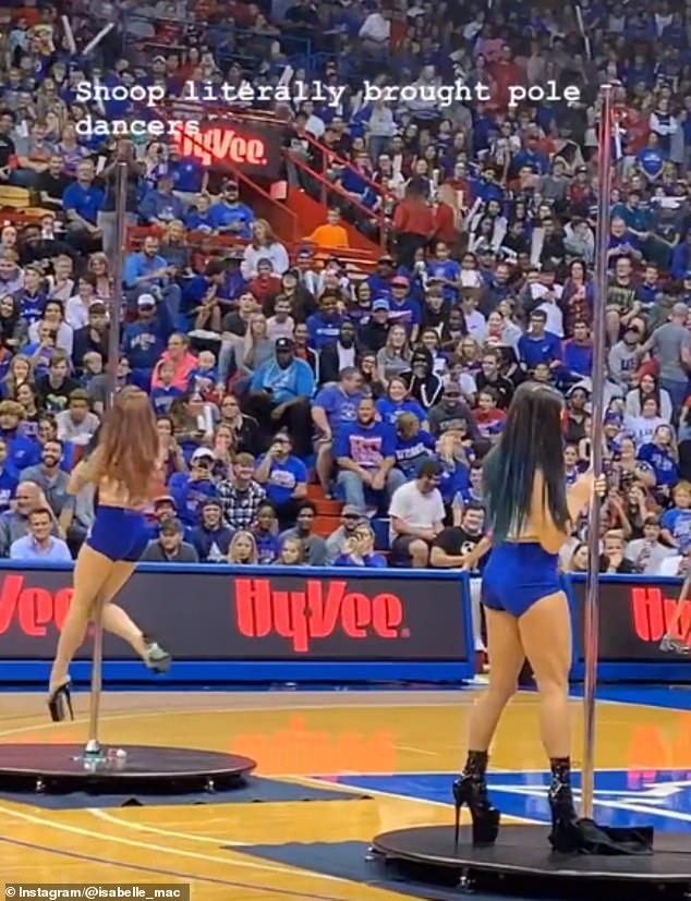 Snoop’s 35-minute set at Allen Fieldhouse featured scantily dressed women gyrating on stripper poles and doing the splits. Fake money being shot into the crowd and unedited versions of the rapper’s hit songs, including “Drop It Like It’s Hot” and “Gin and Juice.