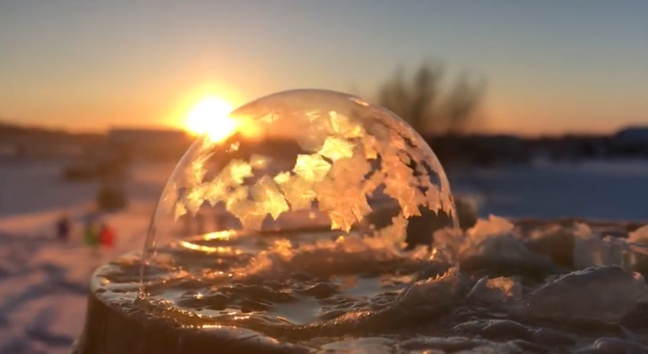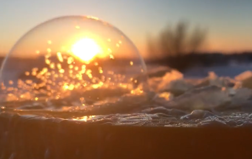 The professor turned into a filmmaker, too. It was also observed that the bubbles formed domes that started freezing. It looked like a cover in ice crystals of the outer exterior of the bubble. In the end, the bubbles were popped in the intense breeze.
