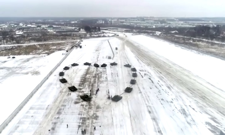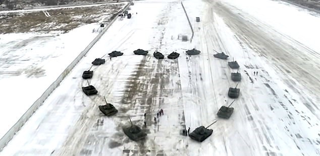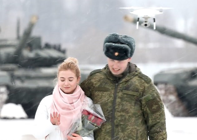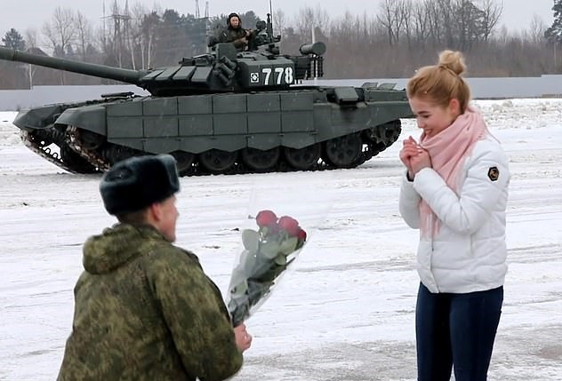 A soldier from Russia has proposed to his girlfriend in the most unconventional way by aligning 16 tanks into a heart shape on Valentine’s Day.