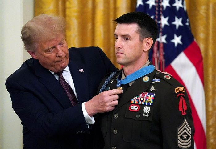 “Today he joins the immortal company of our most revered American heroes,” Trump said in the event. “Pat, you personify the motto: ‘Rangers lead the way.’”