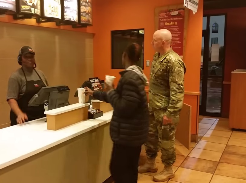 Col. Robert Risdon during a rainy evening in Taco Bell. They approached Risdon asking him whether he would like to buy some of the food they had prepared.