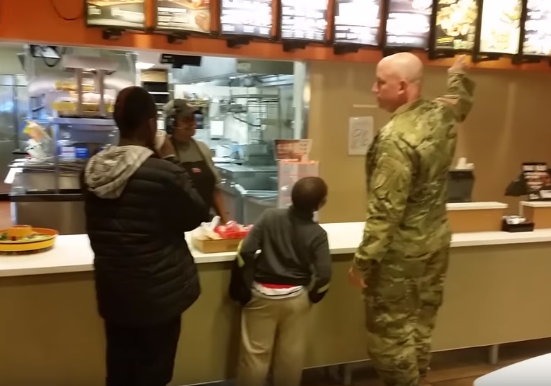 The footage released shows the soldier helping the boys to place their orders at the counter. Both of them ordered what they find most delicious from the colorful display board above the cashier.