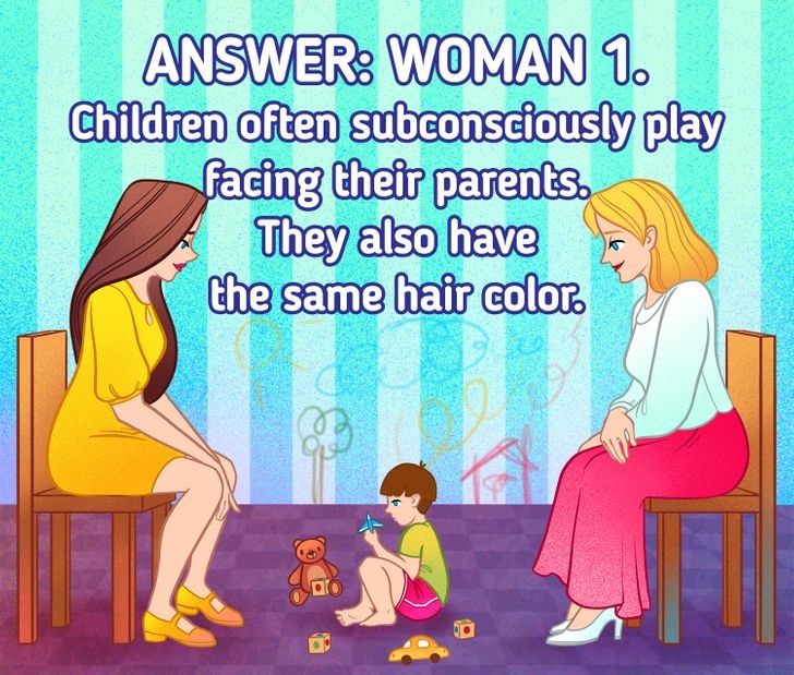 This time, it’s your job to find out who the mother of the child playing on the floor is.