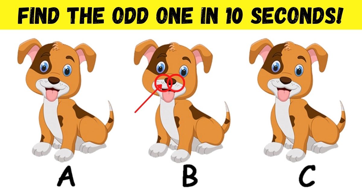 Did you spot the odd one out in just ten seconds? If yes, congratulations! If not, here’s a hint to help you pass the test on your own. There’s something different about the puppy in the middle.
