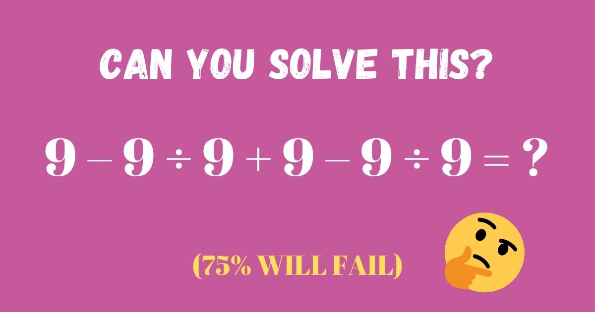 The math problem goes like this: 9 – 9 ÷ 9 + 9 – 9 ÷ 9 = ?