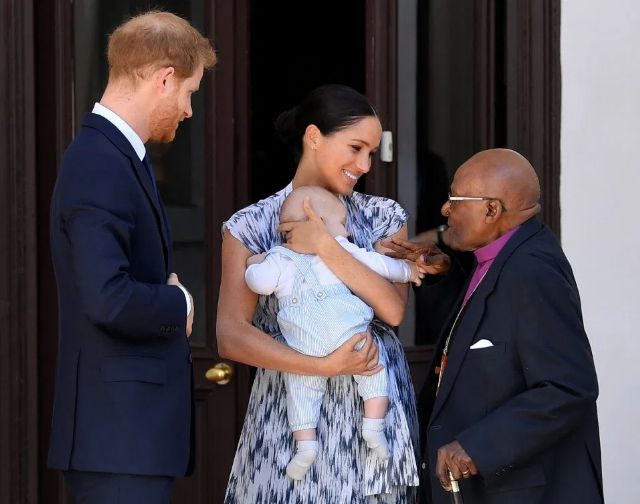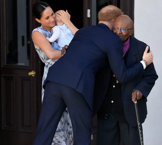 Meghan Markle who stood cuddling up Archie with the dad Prince Harry having his hand around them, welcomed the star of the anti-apartheid movement, Desmond TUTU and his daughter Thandeka Tutu-Gxashe.