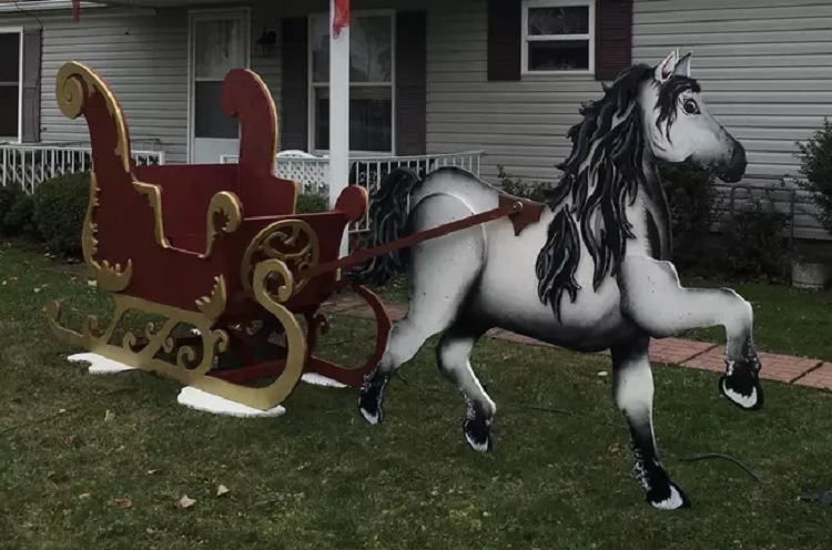 “It was a real labor of love. The sleigh is made out of birch. I drew the design on the wood and cut it out.