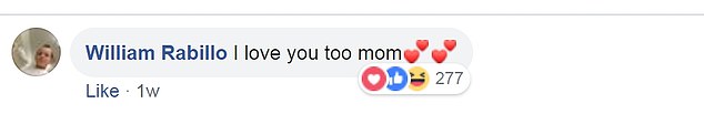 William commented on the post, ‘I love you too mom [hearts emoji, hearts emoji]’