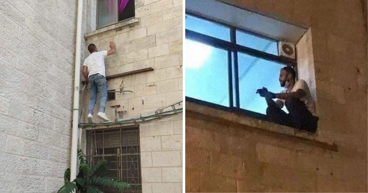 Heartbreaking images show 30-year-old Jihad Al-Suwaiti from Palestine using a drainpipe to scale the hospital building where his mother had been staying while suffering from COVID-19.
