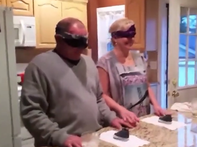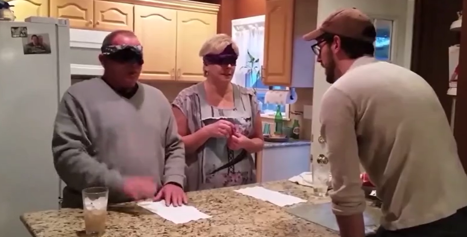 I n the video you can see that the son called his parents and told them that it is very difficult to tie the lace of a shoe when it is kept inverted. They were convinced and came forward to try it with the blindfolds on.