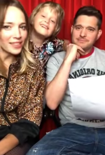 Before the little boy jumped into the frame with his parents, Bublé and Lopilato were talking about their adventures at home and how the social distancing has been coming out for them.