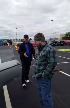 A young son took his father out to show him the car of his dreams that was standing in an open parking lot. He invited his father to look at the car while he was recording everything on video.
